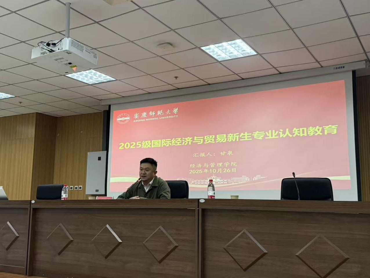 为搭建专业教育与行业实践的桥梁,帮助学生明晰职业发展方向,10月26日下午,经济与管理学院于M112会议室成功开展2025级国际经济与贸易专业新生认知教育讲座。本次活动特邀奇瑞商用车国际事业部海外大区经理甘泉主讲,学院副院长黄光锋主持,全体国贸专业学生参会。