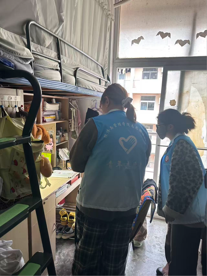 活动中,参与人员在2号楼门口集合,明确排查范围后,分组领取《宿舍安全隐患排查登记表》及记录工具,依次进入对应宿舍展开全面检查。各小组严格按照排查标准,重点针对违规使用大功率电器、私拉乱接电线、杂物堆积以及门窗锁闭情况等隐患进行细致排查。对发现的隐患现场拍照登记,明确整改要求,同时向宿舍同学讲解安全风险,指导现场整改。