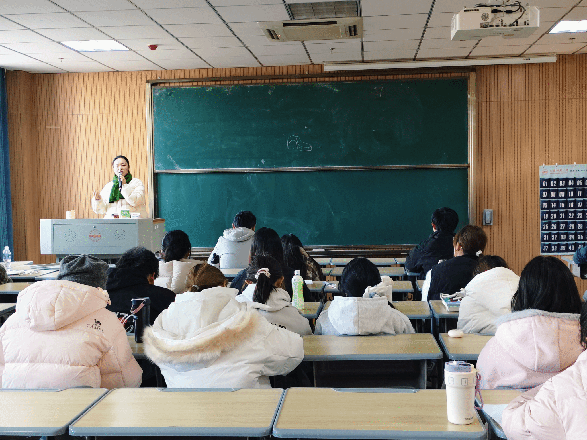 讲座中,陈漫雪围绕面试礼仪、形象管理等求职关键模块展开系统分享,结合大量真实招聘案例与自身从业经历,深入浅出地解析了当前就业市场的发展趋势、不同行业的用人标准差异,为同学们搭建起“市场需求”与“自身能力”之间的认知桥梁。