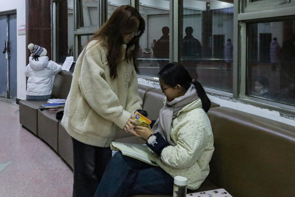 “没想到考前能收到这样一份小礼物!”广播电视学专业2022(2)班的刘桐正在图书馆靠窗位置埋头刷着考研英语真题,面前突然递来的暖粥和暖身贴,下意识停下笔,随即反应过来是学弟学妹送来的心意。“暖身贴上的疯狂动物城图案非常可爱,看到朱迪的形象,我便想起它勇往直前的模样,希望自己能怀揣这份勇气,在考场上全力以赴。”