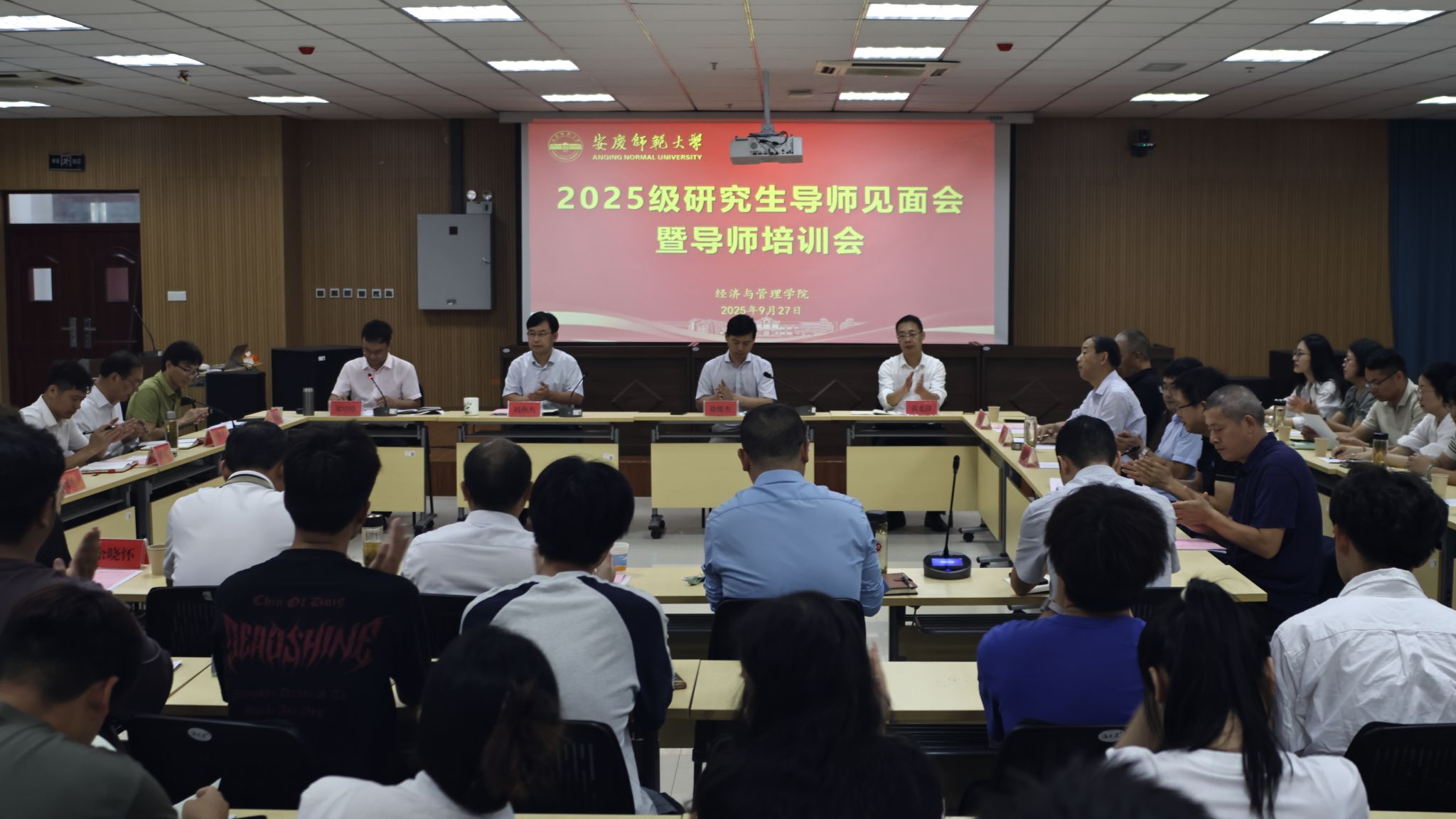学院三个硕士学位点负责人彭长生、殷功利、丁玉龙,则分别围绕强化学科认知、优化培养过程、区分培养重点等方面,分享了学位点建设的思路与举措。随后,副院长梁培培通报了学院2025级师生双选情况,并解读了不同学位点的硕士学位授予标准。他指出,导师作为育人责任人,需切实履行立德树人职责,严把培养与学位关口,全面保障研究生培养成效。在自由交流环节,与会导师还就专业发展、学业规划、实践教学与社会需求等议题进行了交流研讨。