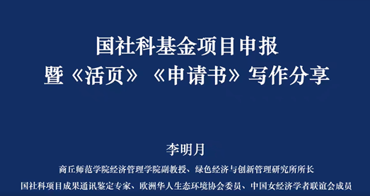 11月1日,由经济与管理学院主办,安徽省数字经济研究中心、区域经济与城乡发展研究所、经济与社会发展研究所联合承办的“启航沙龙”第6期顺利举办。商丘师范学院经济管理学院李明月副教授应邀作“国家社会科学基金项目申报暨《活页》《申请书》写作分享”专题报告。活动由院长徐俊杰教授主持,学院部分教师线上参加。