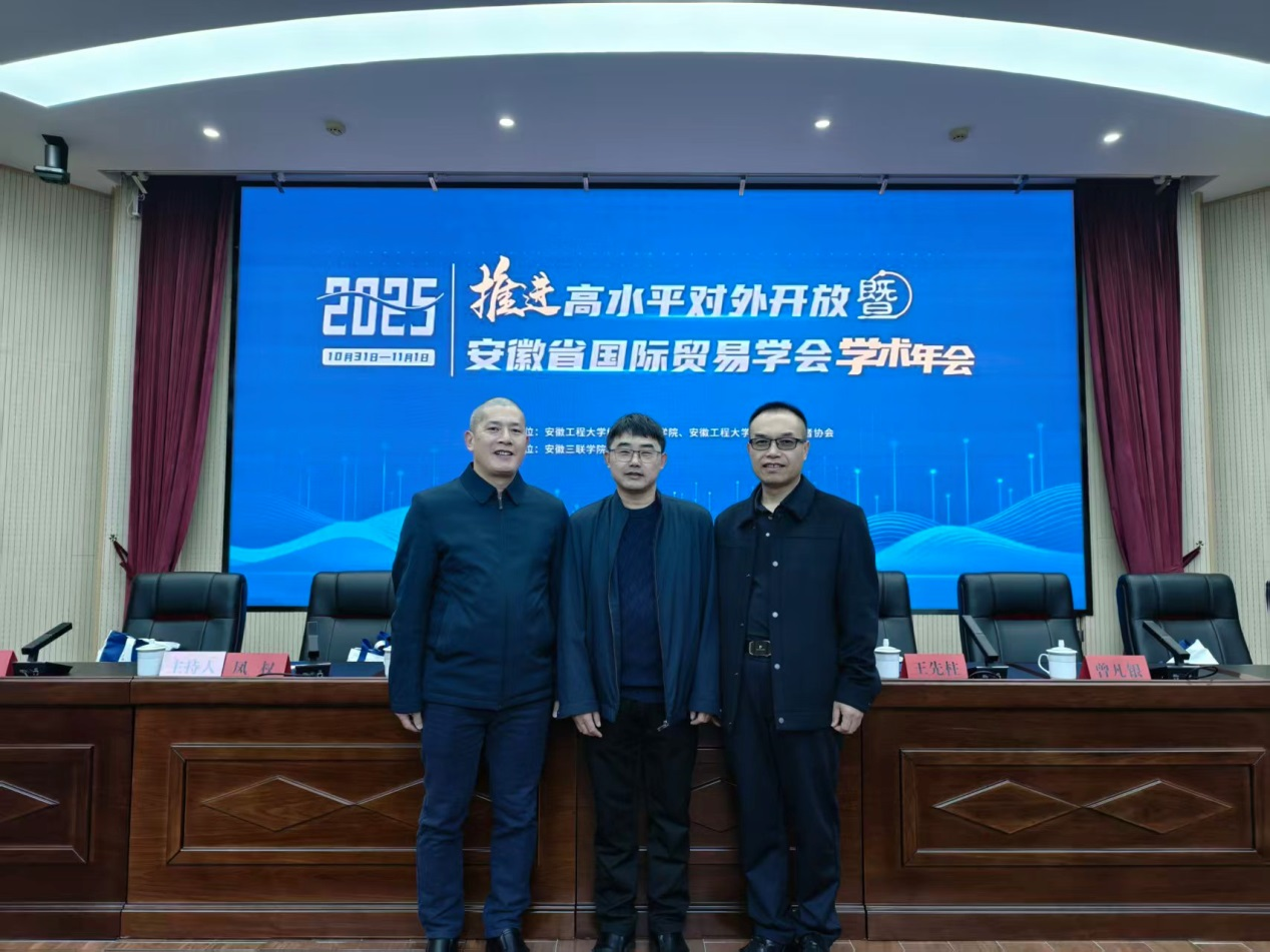 10月31日—11月1日,由安徽省国际贸易学会与安徽工程大学共同主办,安徽工程大学经济与管理学院承办、安徽三联学院协办的“推进高水平对外开放暨2025年安徽省国际贸易学会学术年会”在芜湖市顺利召开。来自省内20余所高校和实业界60余位专家、学者参加了本次年会。经济与管理学院黄先军教授、殷功利教授、李裕鸿副教授应邀参加了会议。