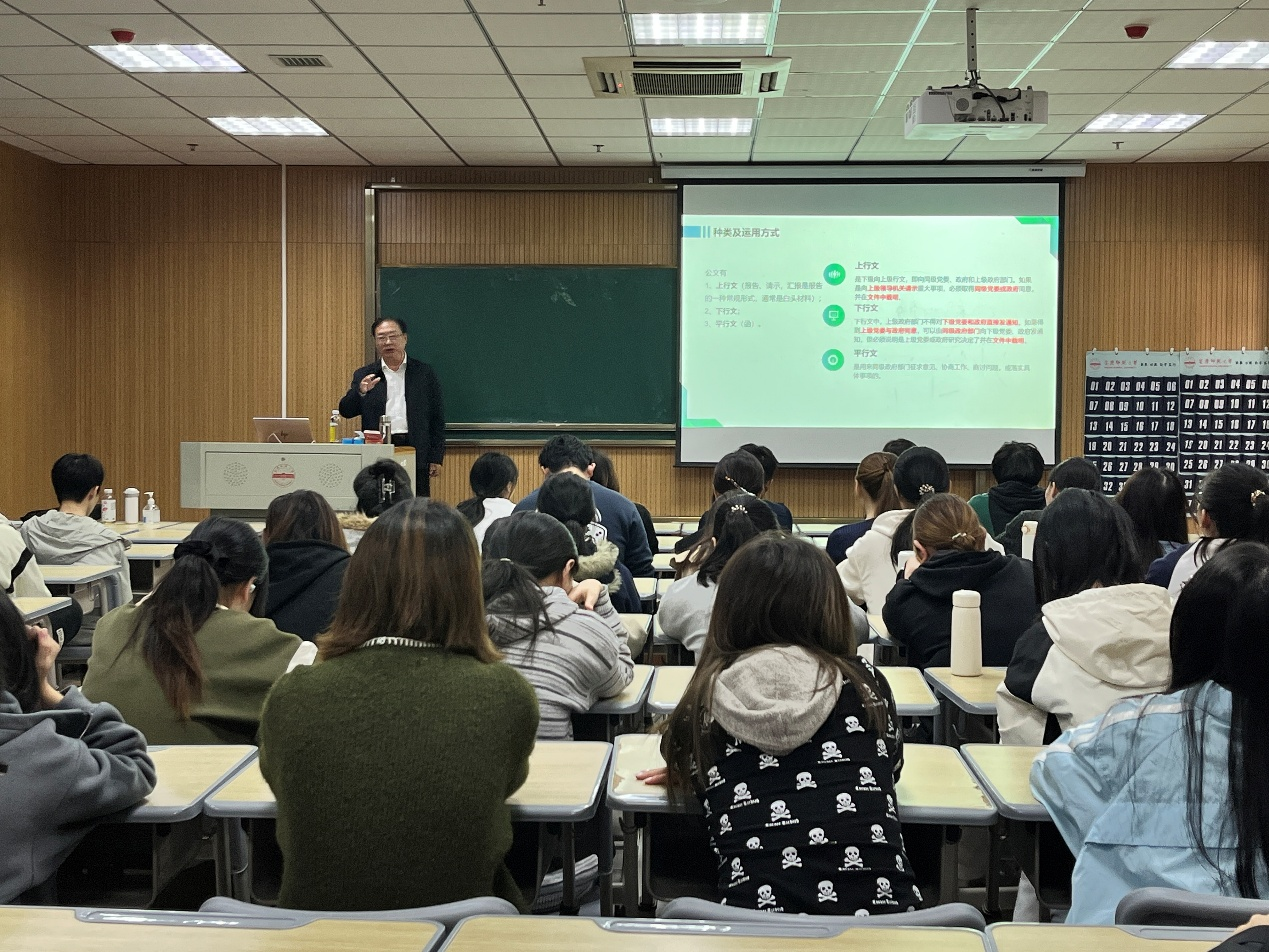 汪传华老师围绕“新时代大学生如何适应行政机关的职业能力需求”这一主题,依托《公文写作要求及面试试题解析》培训材料,对公文写作、沟通协调等核心技能展开了系统讲解,并对面试题型进行了深入剖析。讲座现场,同学们认真聆听、积极互动,大家表示讲座内容实用性颇高,对未来求职具有重要的指导价值。