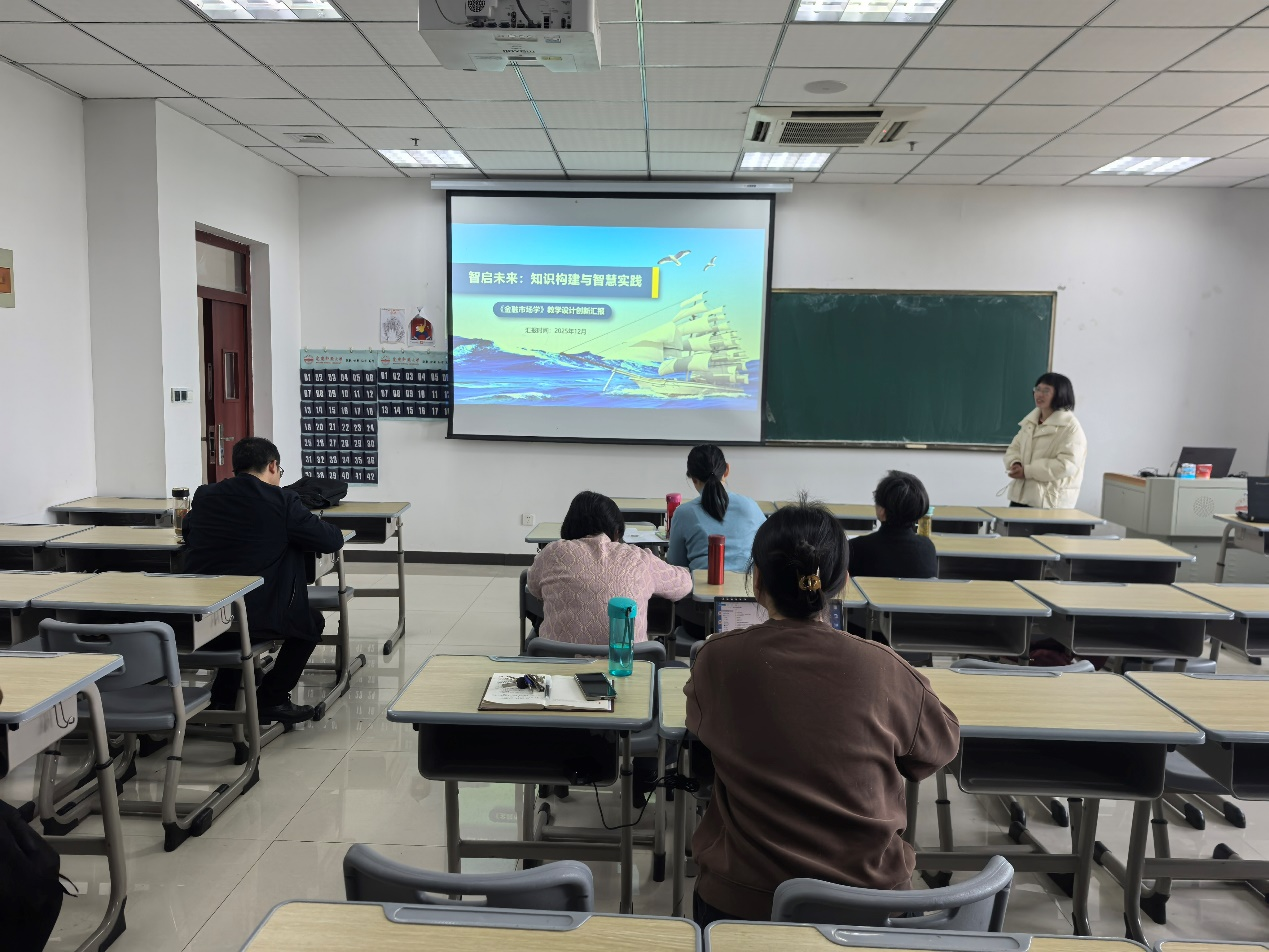 在磨课活动中,四位教师依次分享了各自的教学创新实践。王洪国副教授围绕《宏观经济学》课程,从宏观经济政策章节引入,结合金银价格、房价波动等现实案例生动剖析我国财政政策,并引导学生通过学习通平台实时查阅政策工具,在理论与实践的结合中自然融入课程思政元素。张琼老师以《金融市场学》课程为例,分享了其以学生为中心、系统重构课程的教学创新经验,通过优化教学目标、重组知识模块、丰富资源与考核方式,并积极探索AI工具在教学场景中的应用,充分展现了“新文科”建设理念下的教学成效。罗雪纯老师在《管理学》组织文化章节的教学中,设计了“课前调研认知-课中案例解构-课后实践设计”的完整闭环,体现了新文科倡导的实践导向与全过程创新。张时玲副教授则以《政治经济学》中“复杂劳动与简单劳动”为切入点,通过组织课堂辩论、引入前沿理论成果等方式,着重培养学生的专业素养、思辨能力与价值观念,深刻挖掘了课程的思政内涵。