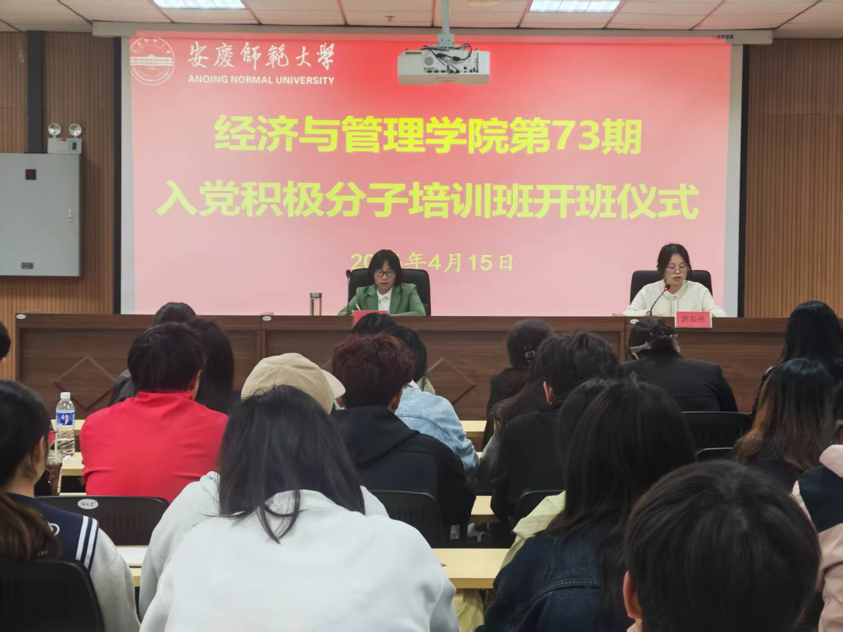 4月15日,学院第73期入党积极分子培训班开班。学院党委副书记、纪委书记唐凤霞、各学生党支部书记以及第73期入党积极分子全体学员参加本次开班式。