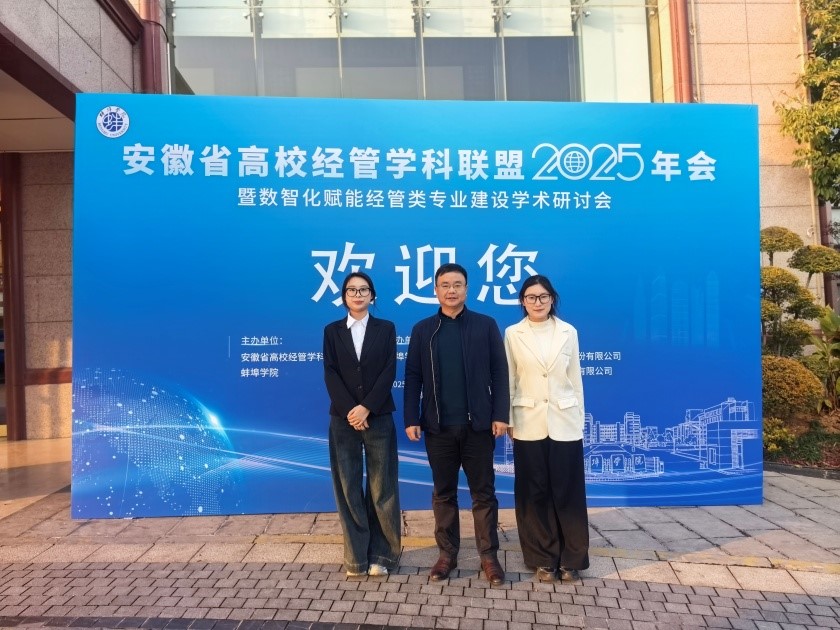 12月12-14日,由安徽省高校经管学科联盟、蚌埠学院联合主办,蚌埠学院经济与管理学院承办的“安徽省高校经管学科联盟2025年会暨数智化赋能经管类专业建设学术研讨会”在安徽蚌埠顺利召开。教务处处长潘锦云教授、学院副院长梁培培应邀参会,国际商务研究生佘琳琳、周礼随行参会。