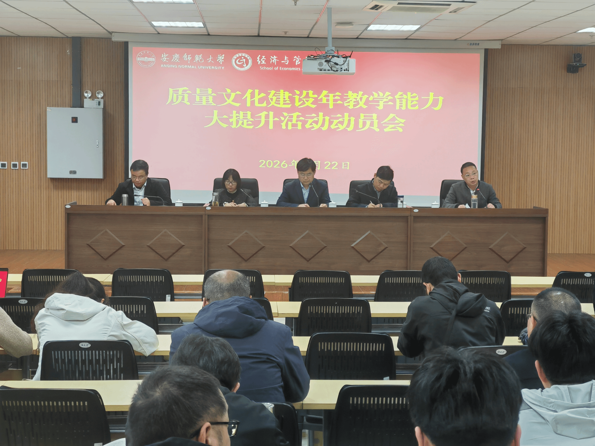 为进一步加强学院质量文化建设,4月22日下午,经济与管理学院在M112召开质量文化建设暨教学能力大提升活动动员会,学院全体教职工参会。会议围绕全面提升课堂教学质量,提升学院青年教师教育教学水平做重要部署。